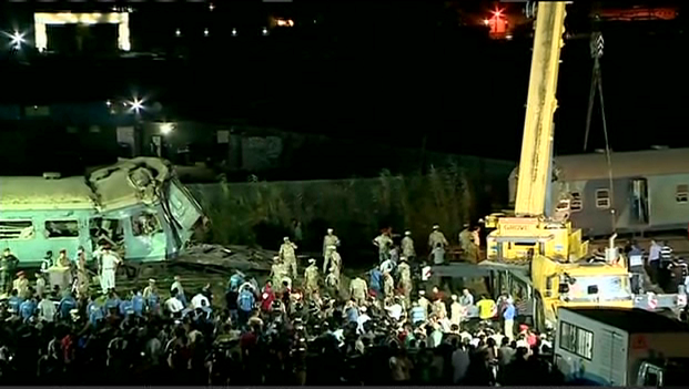 نقلت قناة «أكسترا نيوز» صور حصرية من موقع حادث قطاري الإسكندرية لمتابعة أخر التطورات الخاصة بعربات القطار في حادث التصادم مع قطار آخر في محطة خورشيد بالإسكندرية، ومحاولة انتشال القطارين لاستئناف العمل مرة أخرى.