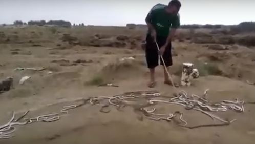 رجل يكتشف مستعمرة للثعابين داخل مزرعته بعد تنظيفها .. فيديو