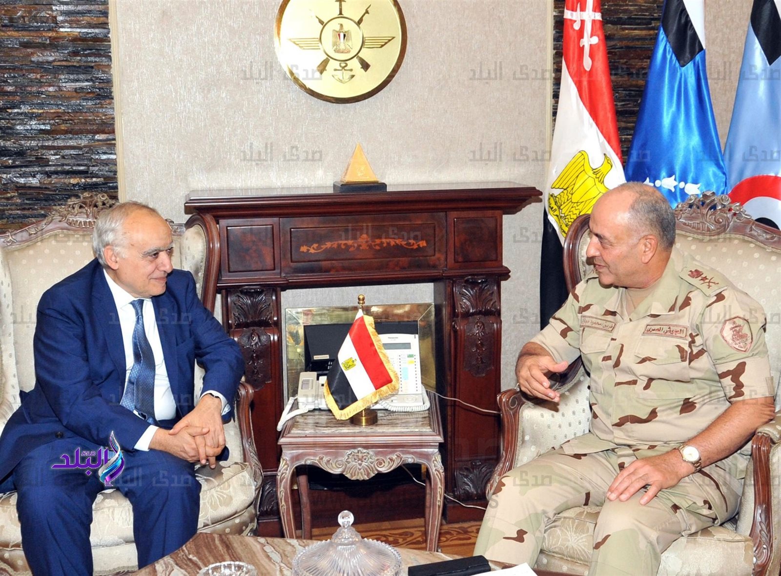إلتقى الفريق محمود حجازى رئيس أركان حرب القوات المسلحة وأعضاء اللجنة الوطنية المعنية بالأزمة الليبة مع " غسان سلامة" المبعوث الدولى الجديد لدى ليبيا والوفد المرافق الذى يزور البلاد ضمن جولة فى دول المنطقة مع بداية مهمته الرسمية
