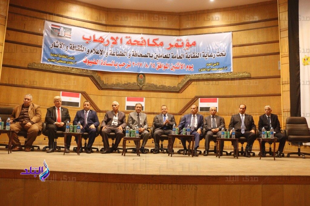 بدأت ظهر اليوم، الاثنين، أعمال المؤتمر الذي تعقده النقابة العامة للعاملين بالصحافة والطباعة والإعلام، تحت عنوان "لا للإرهاب"، والذى سيشارك فيه ممثلو العاملين وأصحاب الفكر داخل المؤسسات الصحفية والإعلامية والثقافية والآثار.