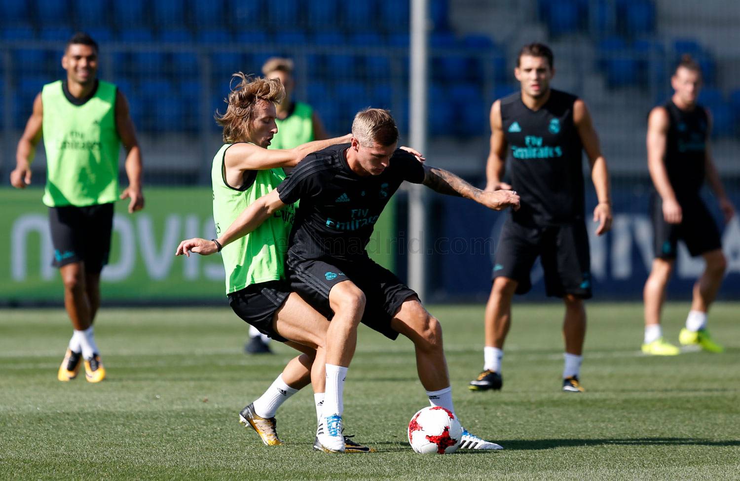وتواجد جميع اللاعبين بالتدريبات بالإضافة إلى لاعبي الكاستيا اشرف ولوكا، بينما واصل فاييخو عملية شفائه من الإصابة التي لحقت به، وبعد عمليات الاحماء قام اللاعبون بإجراء عدة تمرينات بدنية، ثم مارسوا تمارين الاستحواذ على الكرة والضغط على حاملها، وفي النهاية لعبوا مباراة تدريبية في ملعب ضيق .