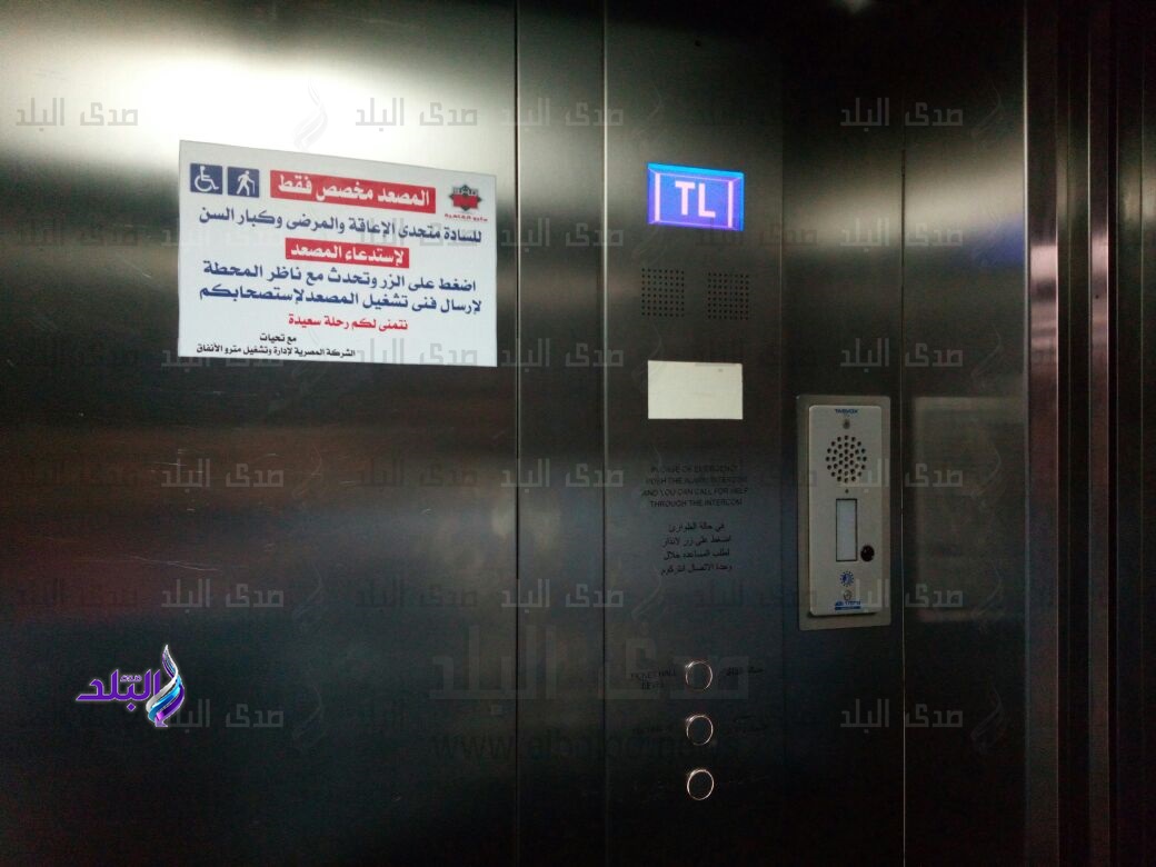 قال أحمد عبد الهادي المتحدث الرسمى باسم الشركة المصرية لإدارة وتشغيل مترو الأنفاق، إن الشركة قامت بتعليق ملصقات في جميع المصاعد الكهربائية بمحطات الخطوط الثلاثة توضح كيفية استخدام المصاعد الكهربائية للركاب.