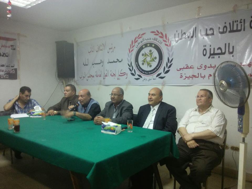شهد ائتلاف حب الوطن بمحافظة الجيزة برئاسة المهندس بدوي عقبي، اجتماعا حاشدا للمنسقين والأعضاء، لوضع خطة التحرك المرحلة القادمة، برعاية النائب البرلماني جمال عبدالناصر عقبي وكيل القوى العاملة بالبرلمان، وعضو المكتب السياسي لائتلاف دعم مصر.