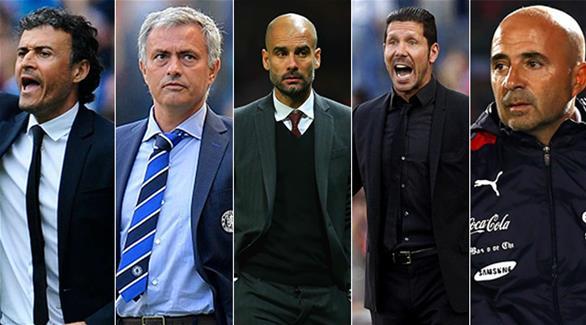 وجاءت قائمة المدربين على النحو التالى: ماسيميليانو أليجري وكارلو أنشيلوتي وأنطونيو كونتي ولويس إنريكي وجوارديولا وليوناردو يارديم والألمانى يواكيم لوف والبرتغالى جوزيه مورينيو وماوريسيو بوكيتينو ودييجو سيميوني وتيتي والفرنسي زين الدين زيدان.