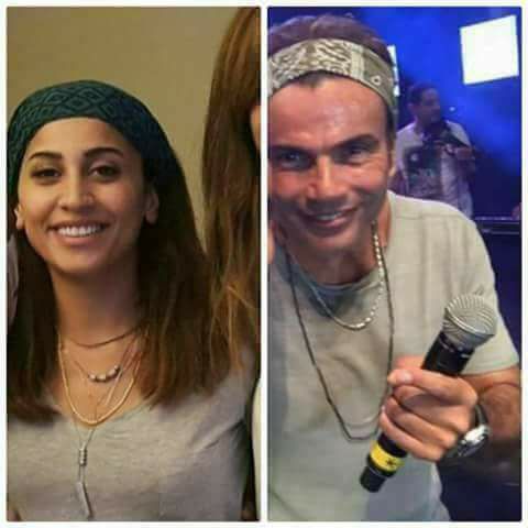 شاهد.. عمرو دياب ودينا الشربيني بنفس التي شيرت
