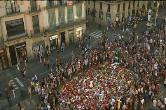 شارك العشرات منذ قليل في وقفة تأبين لتكريم ضحايا الهجوم على متنزه لامبارد ببرشلونة.