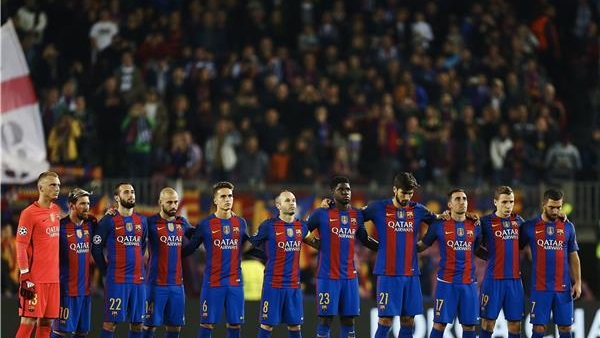 لاعبو برشلونة يقفون دقيقة حداد على أرواح ضحايا الحادث الإرهابي