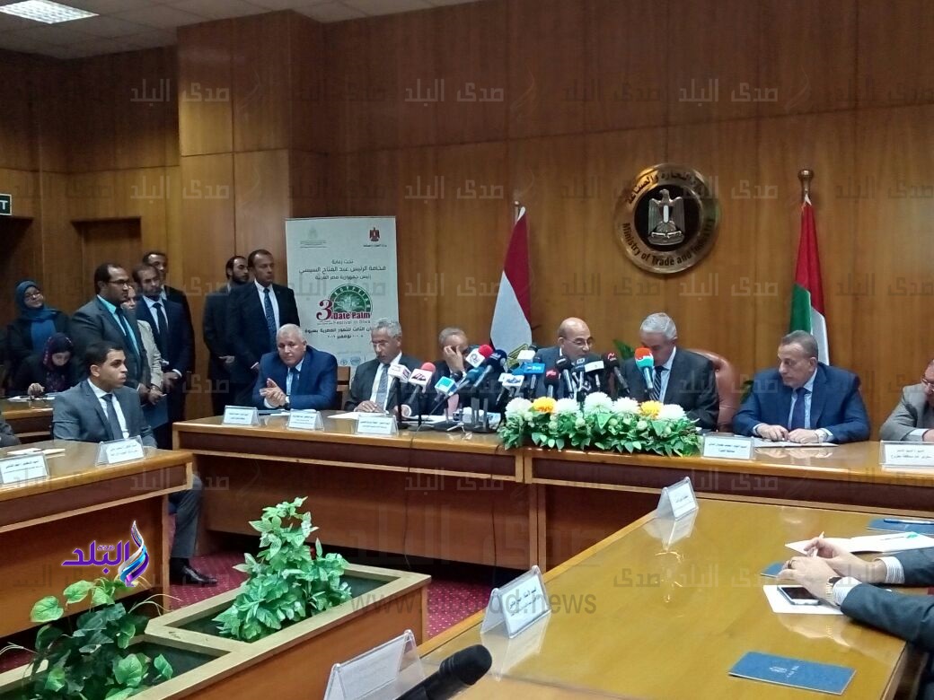 جاء ذلك خلال المؤتمر الصحفي الذي عقد بوزارة التجارة والصناعة، للإعلان عن هذا الحدث بحضور وزيري الزراعة والصناعة، ومحافظي الجيزة والوادي الجديد، وسفير الإمارات بالقاهرة، والدكتور عبد الوهاب زايد أمين عام جائزة خليفة الدولية للنخيل والابتكار الزراعي.