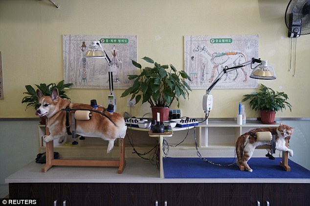 وتظهر الصور الرائعة القطط والكلاب تتلقى العلاج في العيادات بعد أن قرر أصحابها معرفة ما إذا كان سيساعدهم. ويقول وانغ أحد أصحاب القطط أن، قطته بعد عدد من الجلسات صار باستطاعتها المشي والقفز وحتى القتال مع القطط الأخرى.