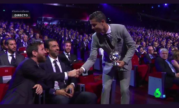 في لفتة طيبة هنأ الأرجنتيني ليونيل ميسي ، لاعب فريق برشلونة الإسباني ، غريمه التقليدي ، البرتغالي كريستيانو رونالدو ، عقب تتويجه بلقب أفضل لاعب في أوروبا لهذا العام .