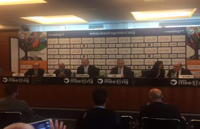 وكان منتدى ريميني قد بدأ اعماله الأحد الماضي وقام بافتتاحه رئيس الوزراء الإيطالي وشارك في ندواته اكثر من ٤٠٠ مفكر وخبير في مختلف المجالات ومن المقرر أن يتحدث الفقي الليلة عن دلالات زيارة البابا فرنسيس لمصر .