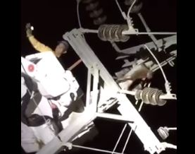 ويظهر فيديو تداوله رواد موقع التواصل الاجتماعي، قرد يعلق بين اسلاك تيار كهربي ، ليتسبب فى انقطاع التيار بالكامل عن المنطقة المذكورة، فيما قام مسؤولي الكهرباء بالصعود إلى المحول لسحب القرد من أعلى لتشغيل التيار الكهربي مرة أخرى.