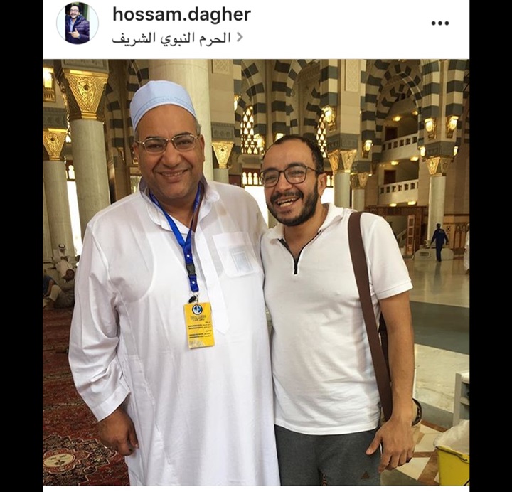نشر الفنان حسام داغر صورة جمعته بالفنان بيومي فؤاد، أثناء تواجدهما في الأراضي المقدسة لأداء فريضة الحج.