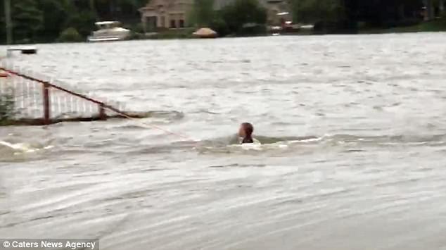تمكن طفل من الصمود أمام فيضان هائل خلفه إعصار ضرب أنحاء مدينة هيوستن بولاية تكساس الأمريكية خلال الأيام الماضية، حيث ظل الطفل رافعا رأسه وسط مياه الفيضان ليتم إنقاذه من الغرق بعد قضائه فترة طويلة بالمياه.