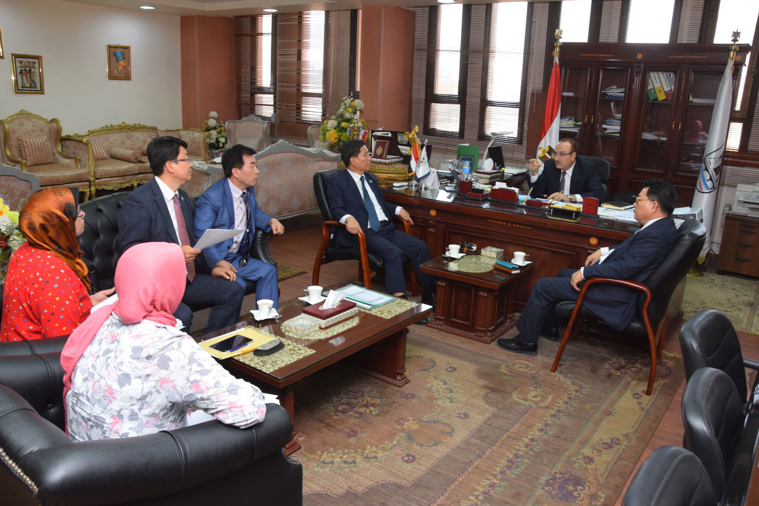 جاء ذلك خلال استقباله لمسؤولي الجمعية في مقدمتهم رئيس مجلس الإدارة مستر كانج ، وممثلي عدد من الشركات الكورية العالمية العاملة في مجالات المياه ومعالجة الصرف الصحي بتكنولوجيا حديثة والاستثمار والصناعات المختلفة .