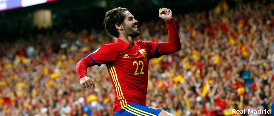 وقالت صحيفة "ماركا" في غلافها الرئيسي: "إيسكو جامح"، ناشرة صورة ضخمة للاعب وهو يحتفل مع زملائه بالمنتخب بأحد هدفيه.