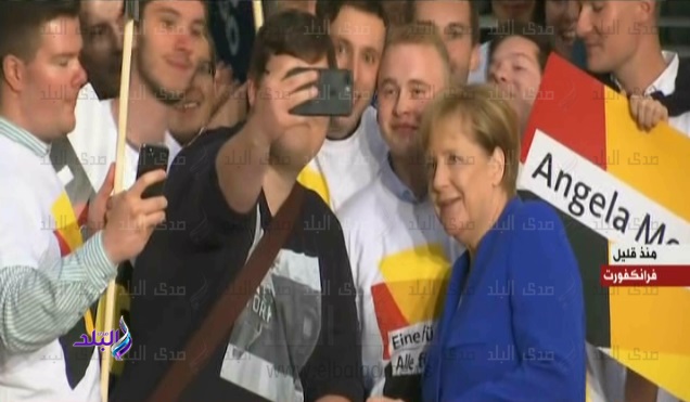 وحرص أحد انصار " ميركل " علي التقاط صورة "سيلفي " معها عقب وصولها لمقر المناظرة .
