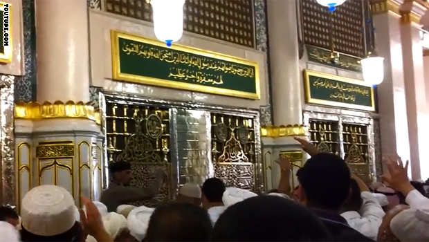 وأضاف «جمعة»، في فتوى له، أنه يستحب بعد دخول المسجد أن يصلّى الزائر تحية المسجد ويستقبل القبر الكريم يستدبر القبلة على نحو أربع أذرع من جدار القبر، وسلَّم مقتصدًا، لا يرفع صوته، ويقول: «السَّلامُ عَلَيْكَ يا رَسُولَ اللّه! السَّلامُ عَلَيْكَ يا خِيرَةَ اللّه مِنْ خَلْقِهِ! السَّلامُ عَلَيْكَ يَا حَبِيبَ اللَّهِ! السَّلامُ عَلَيْكَ يَا سَيِّدِ المُرْسَلِينَ وَخَاتَمَ النَّبِيِّينَ! السَّلامُ عَلَيْكَ وَعلىٰ آلِكَ، وأصْحابِكَ، وأهْلِ بَيْتِكَ، وَعَلىٰ النَّبيِّينَ وَسائِرِ الصَّالِحِينَ؛ أشْهَدُ أنَّكَ بَلَّغْتَ الرِّسالَةَ، وأدَّيْتَ الأمانَةَ، وَنَصَحْتَ الأُمَّةَ، فَجَزَاكَ اللَّهُ عَنَّا أفْضَلَ مَا جَزَىٰ رَسُولًا عَنْ أُمَّتِهِ».