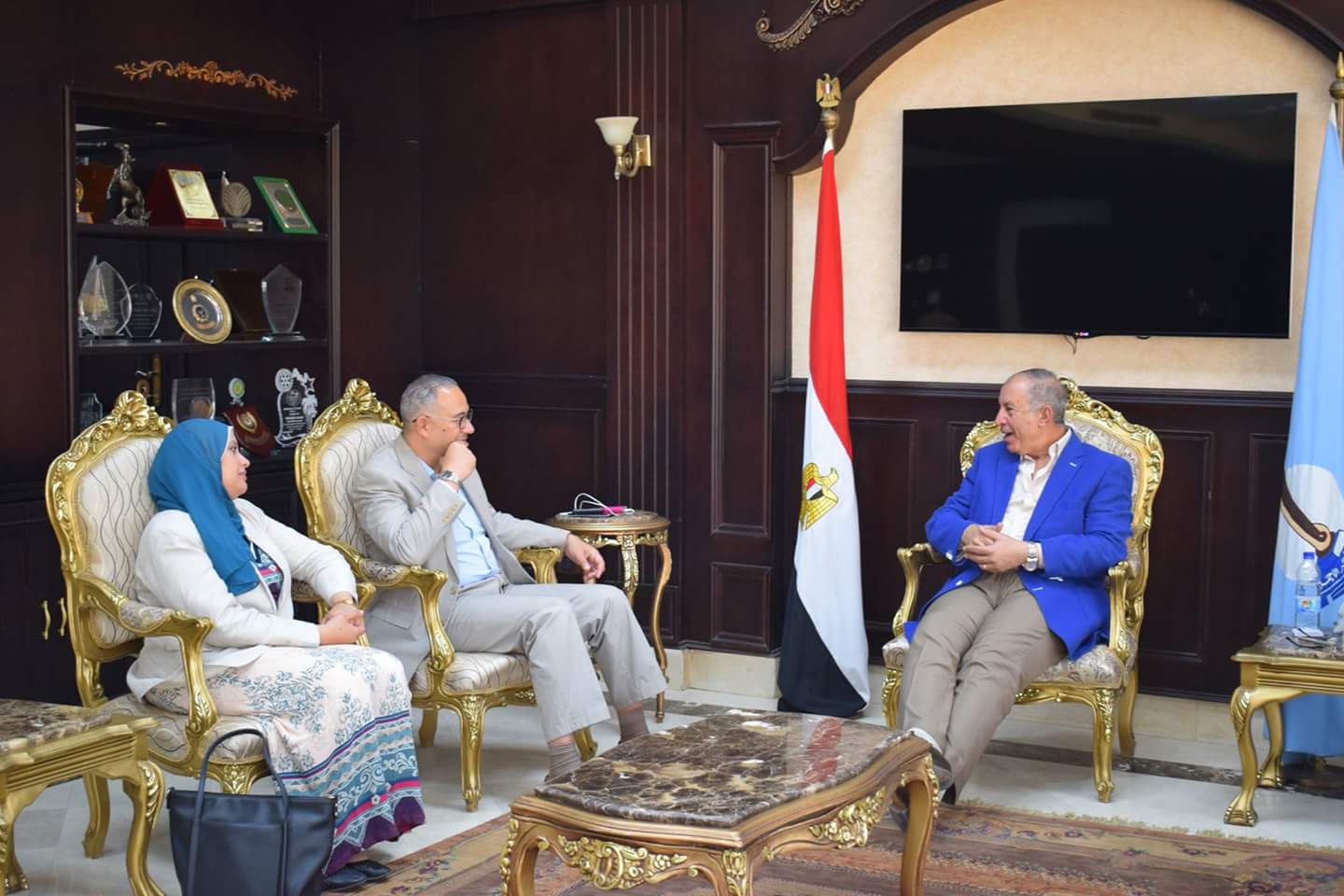 استقبل اللواء أحمد عبد الله محافظ البحر الأحمر، اليوم الأربعاء - الدكتور أحمد عادل درويش، نائب وزير الإسكان للتطوير الحضرى والعشوائيات بديوان عام المحافظة لمناقشة الرؤية المستقبلية وتطوير الصورة البصرية لمدينة الغردقة وباقي مدن المحافظة وأيضًا لمناقشة ملف العشوائيات.
