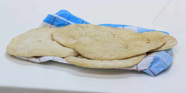 * توضع فى طاسة خبز ساخنة على النار ويقلب على الوجه الآخر