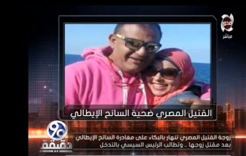 انهارت فاتن محمد، زوجة القتيل المصري علي يد السائح الايطالي بالبكاء على الهواء، وذلك عقب إخلاء سبيل المتهم بكفالة 100 ألف جنيه على ذمة التحقيقات.