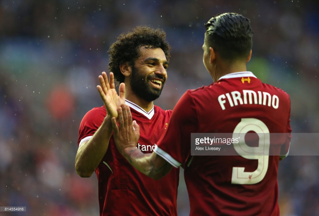 ويشارك محمد صلاح ضمن التشكيلة الأساسية لفريقه ليفربول في مركز الجناح الأيمن بعد شفائه من المرض الذي تعرض له بالأمس بالتهاب في الحلق.