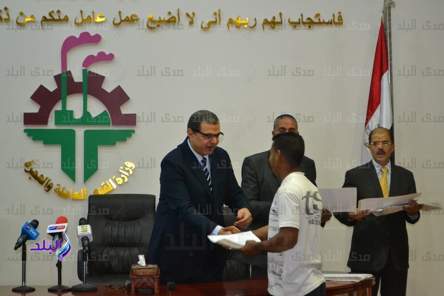 جاء ذلك خلال تسليم الوزير 189 عاملا عقود عملهم بإحدى شركات المقاولات بدول الخليج على مهن عامل، وحداد مسلح، وشدة معدنية، ومبيض محارة، وكهربائي، ومساحين، ومساعد مساح.