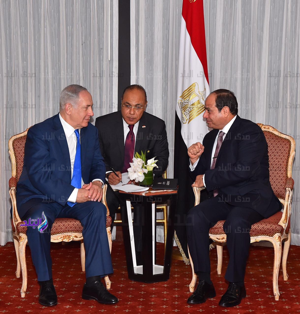 استقبل الرئيس عبد الفتاح السيسي اليوم بمقر إقامته بنيويورك رئيس الوزراء الإسرائيلي بنيامين نتنياهو، بحضور سامح شكري وزير الخارجية، وخالد فوزي رئيس المخابرات العامة، واللواء عباس كامل مدير مكتب رئيس الجمهورية.