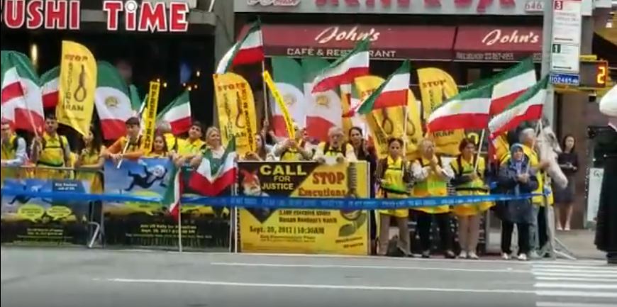 نظم عدد من أنصار المعارضة الإيرانية في نيويورك مظاهرة خارج مقر الأمم المتحدة احتجاجًا على زيارة الرئيس الإيراني حسن روحاني ومشاركته في أعمال الدورة 72 للجمعية العامة للأمم المتحدة.