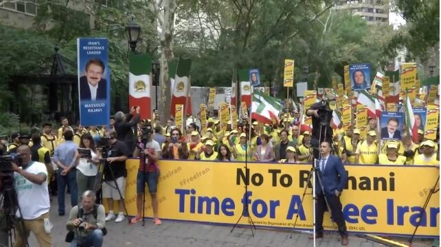 تظاهر المئات من أبناء الجالية الإيرانية في الولايات المتحدة أمام مبنى الأمم المتحدة في نيويورك، بالتزامن مع إلقاء الرئيس الإيراني حسن روحاني كلمته اليوم الأربعاء، أمام الاجتماع الثاني والسبعين للجمعية العامة للأمم المتحدة.