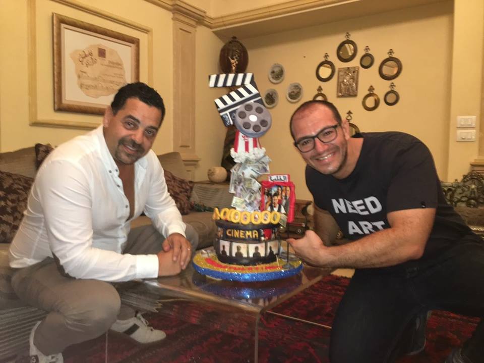 ونشر "العريان" صورة له بصحبة السيناريست صلاح الجهينى، مع كعكة وعلق قائلا: نحتفل بوصول الإيرادات لـ40 مليون جنيه.