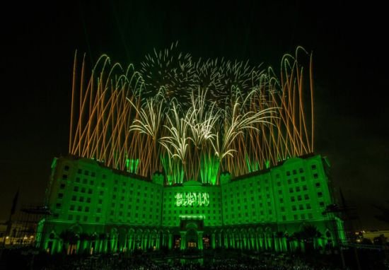 اشتعلت سماء المملكة العربية السعودية بالأضواء والألعاب النارية في واحد من أكبر العروض السنوية باستاد الملك فهد الدولي بالرياض احتفالا باليوم الوطني السعودي الـ 87.