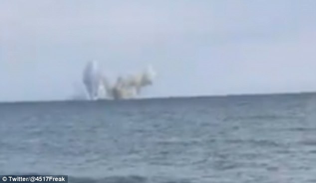 تم تصوير طائرة الحربية أثناء سقوطها بشكل مروع نحو البحر لتتحطم تمام لسرعتها اختراقها داخل المياه.