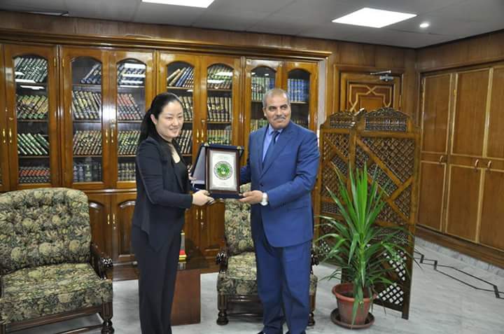 وتم خلال اللقاء بحث سبل دعم أواصر التعاون بين الجانبين ومناقشة أحوال الطلاب الصينين الدارسين بالجامعة.
