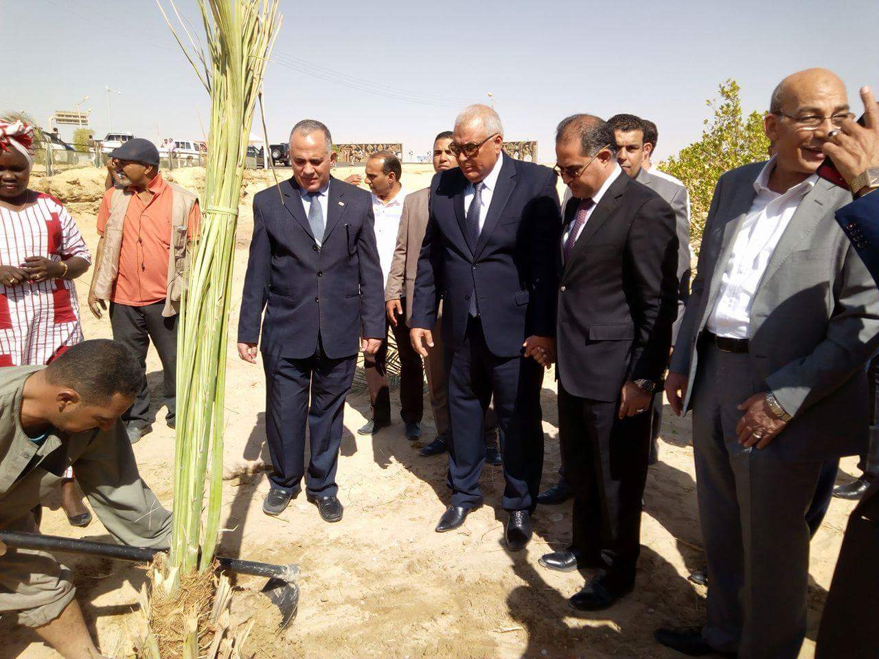 شهد منذ قليل وزير الزراعةعبد المنعم البنا يرافقه كل من وزير ري نوب الصومال صوفيا فال ووزير الري ومحافظ الوادي الجديد زراعةإحدي فسائل النخيل ضمن المبادرةالتي اطلقها محافظ الوادي الجديد لاستبدال أشجار الزينة باشجار النخيل المثمرة.
