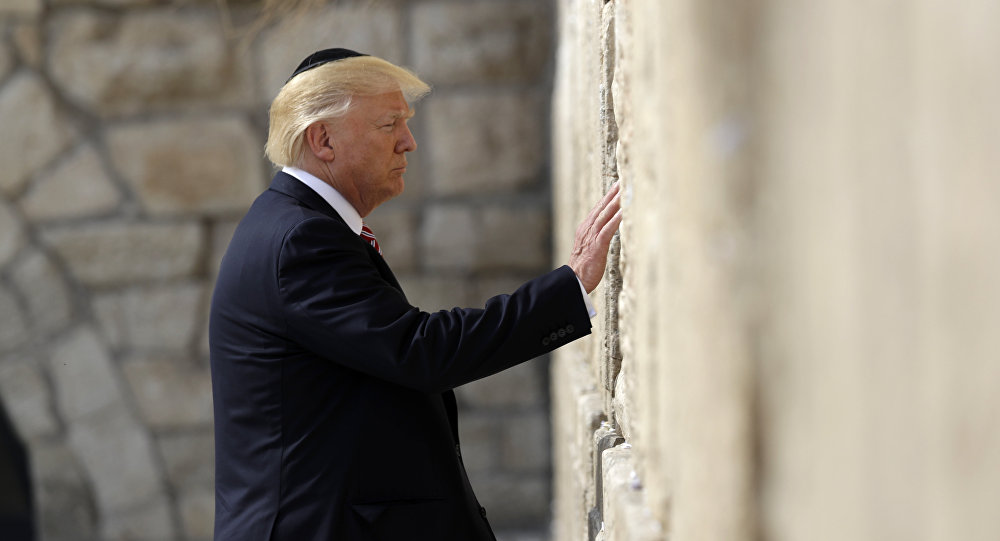 وأرفق ترامب بمنشوره صورة له وهو يقف أمام حائط المبكى بالمسجد الأقصى في القدس مرتديًا القبعة اليهودية "الكيباه"، عندما كان في زيارة لإسرائيل في مايو الماضي.