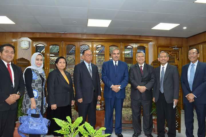 من جانبه أكد مخلصاني جلال الدين على حسن استقبال رئيس الجامعة للوفد، مشيرا إلى عمق العلاقات بين مصر وأندونيسيا منذ القدم ، فالشعب الاندونيسي يحب مصر لما فعلته معه في استقلال اندونسيا.