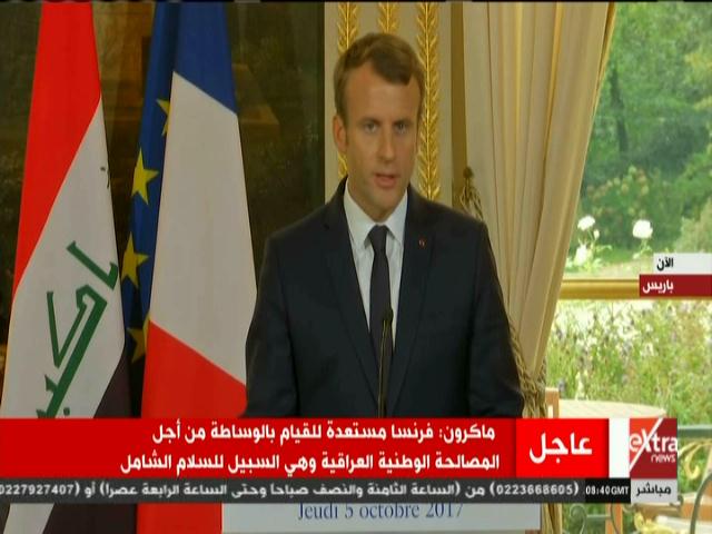 وأضاف "ماكرون"، خلال المؤتمر الصحفي مع رئيس الوزراء العراقي حيدر العبادي، اليوم، الخميس، أن فرنسا تريد حكومة شاملة لكل الشعب العراقي بمن فيهم الأكراد، مؤكدا أن بلاده دائما مشغولة بأوضاع الكرد.