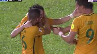 نجح منتخب أستراليا من انهاء الشوط الأول الذي يجمعه بنظيره منتخب سوريا متقدمًا بهدف نظيف دون رد بالمباراة التي تقام حاليًا على استاد هانج جييات في ماليزيا بالمباراة التي تقام في إطار ذهاب الملحق الآسيوي المؤهل إلى كأس العالم 2018 في روسيا.