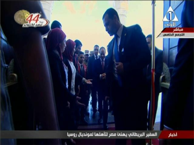وحرص الرئيس السيسي على منح فرصة للشباب لقص شريط الافتتاح و تحيتهم .