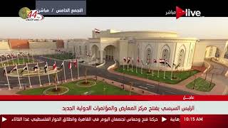 عرضت فضائية "أون لايف"، اليوم، الاثنين، لقطات جوية مصورة عبر كاميرا "درون" لمركز المعارض والمؤتمرات الدولية الجديد بالتجمع الخامس، والذي افتتحه اليوم، الاثنين، الرئيس عبدالفتاح السيسي، ويعد أضخم مركز دولي للمؤتمرات في الشرق الأوسط، والذي سيكون تابعا للشركة الوطنية للمعارض والمؤتمرات الدولية التابعة للقوات المسلحة.