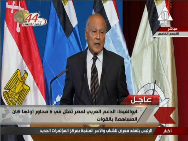 قال السفير أحمد أبو الغيط، الأمين العام لجامعة الدول العربية، إن الدعم العربي في الحرب ضد إسرائيل تمثل فى 6 محاور، أولها كان المساهمة بالقوات العسكرية"، والثاني هو المساهمة المالية من الدول العربية، حيث ساهمت بـ30 مليون جنيه إسترليني، والسعودية بـ 50 مليون جنيه استرليني والكويت 55 مليون جنيه استرليني.