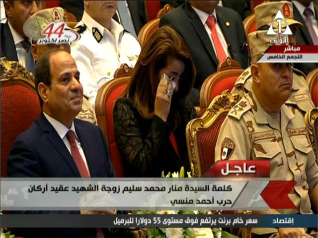 بكت الدكتورة غادة والي وزيرة التضامن الاجتماعي، خلال كلمة منار محمد سليم زوجة الشهيد عقيد أركان حرب أحمد منسي، وحديثها عن بطولاته وتضحياته من أجل الوطن.