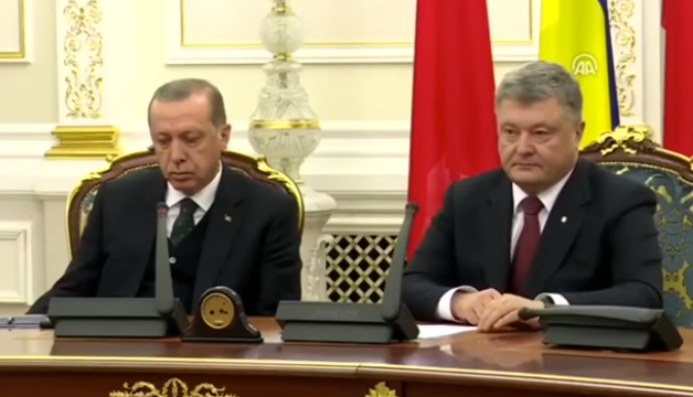 ظهر الرئيس التركي رجب طيب أردوغان، وقد غلبه النعاس، أثناء مشاركته في مؤتمر صحفي، الاثنين، مع نظيره الأوكراني بوروشينكو.