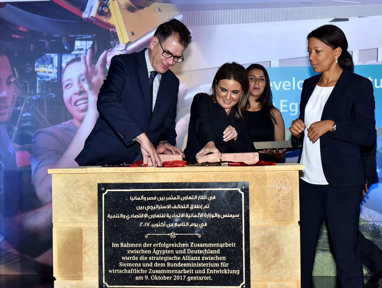 وزيرة التعاون ونظيرها الألماني و"سيمنس" يضعون حجر أساس لمركز التدريب المهني بالسخنة