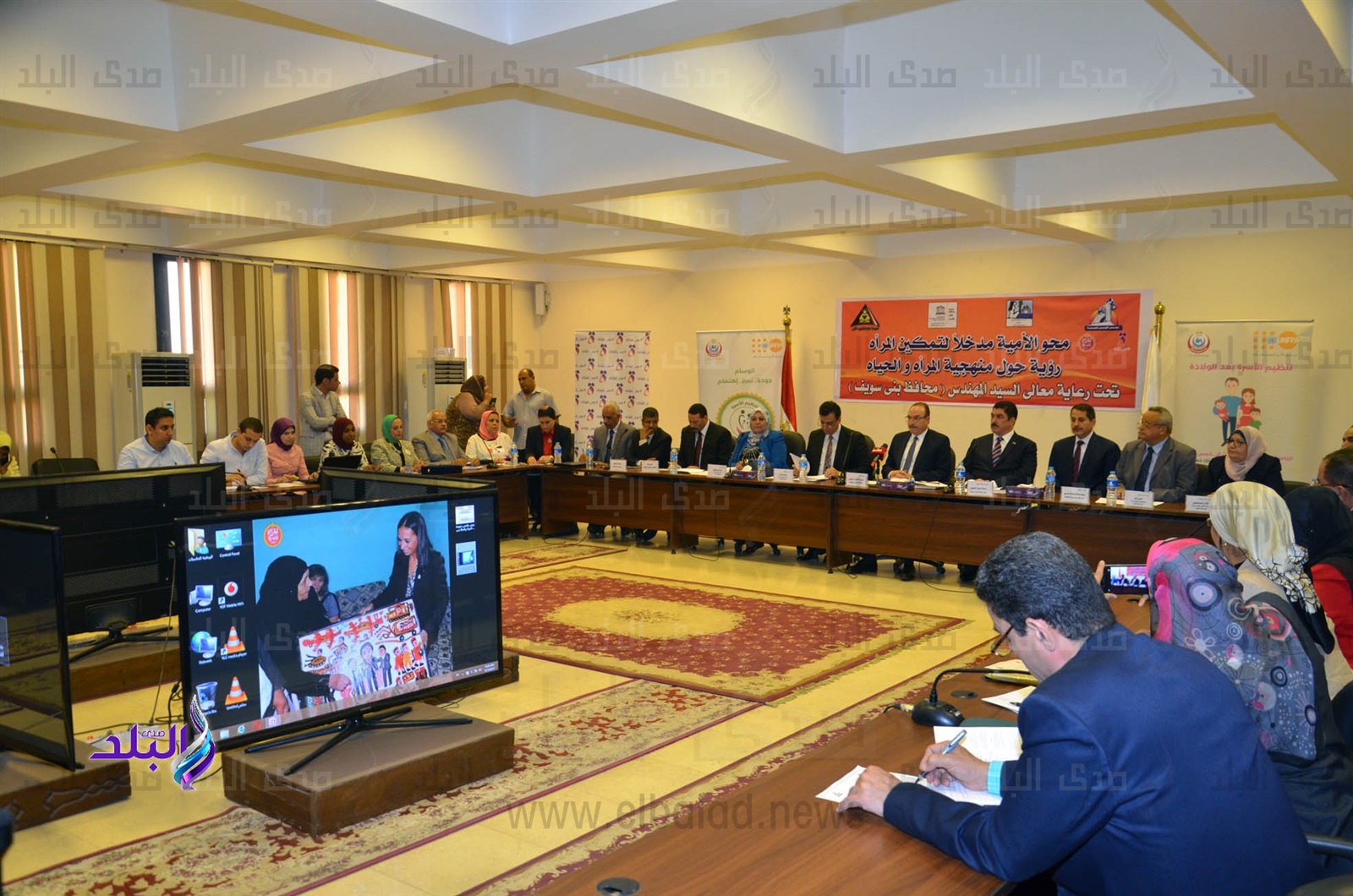 وفيما يتعلق بتفعيل بروتوكول التعاون بين المجلس القومي للمرأة وهيئة تعليم الكبار، أكد محافظ بني سويف أن هذا اليوم يعد مثاليا للربط بين مجموعة أنشطة وبرامج تنموية وقضايا مجتمعية مهمة تتعلق بالقرية والمرأة، ومن أهمها أنشطة تنظيم الأسرة ومحو الأمية، بالإضافة إلى أكبر مشروع للتصنيع الزراعي الغذائي بالقرى والذي بدأت المحافظة تنفيذه لتوفير أكثر من 25 ألف فرصة عمل من خلال إقامة ما يزيد على 2000 مشروع إنتاجي بـ 222 قرية، و860 تابعا، حيث إن هذه الأنشطة والمشروعات تهدف إلى تطوير الحياة بالريف وتتشابك أهدافها ومحتوى برامجها، وهو ما نجحت المحافظة في توظيفها وتوحيدها لتحقيق نقلة نوعية في هذه المجالات وكنموذج متميز أيضا.