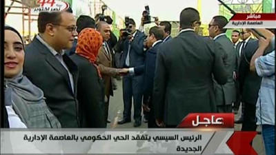 فى لقطة طريفة استوقف أحد العاملين بالعاصمة الإدارية الجديدة، الرئيس عبد الفتاح السيسي أثناء تدشينه عددا من المشروعات بالعاصمة الجديدة.