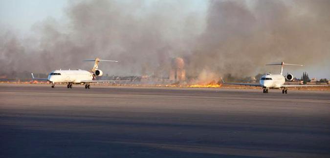 وقال خالد أبو خريص المتحدث باسم المطار إن الرحلات استؤنفت قرب منتصف نهار الثلاثاء بعد تعليقها لعدة ساعات خلال الصباح والليلة السابقة، لكن اشتباكات عنيفة استؤنفت عصر أمس وأُغلق المطار مجددا.
