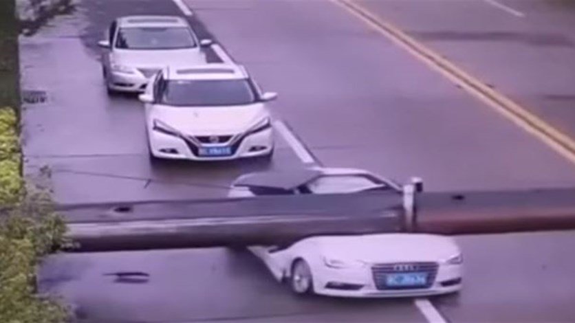 وشهدت احدى الطرق السريعة الصينية الواقعة المؤسفة، بعدما كانت تسير بصورة طبيعية، وبمجرد مرورها من مبنى تحت الإنشاء، حتى حدثت الكارثة.