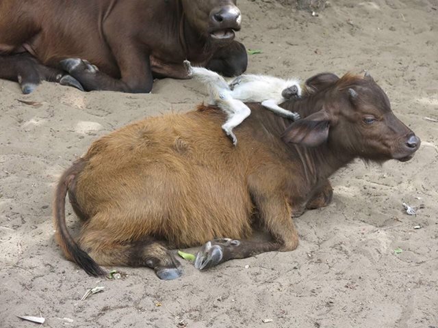 وأظهر مقطع الفيديو الذي التقطته أحد السكان المحليين وجود القرد مستلقيا على ظهر البقرة، حيث يبدو أن هذه هي الصداقة التي يحبها القرد، الاستضافة على ظهر البقرة والراحة.